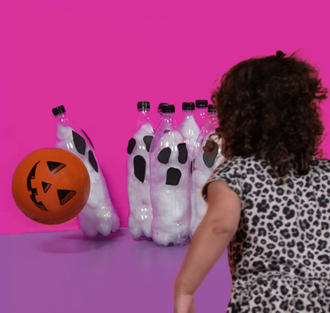 Set the bottles up like bowling pins and let your little ones work on their gross motor skills and roll the ball to knock down the pins! Make it more challenging by moving the start line further and further.
